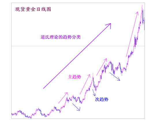 1、道琼斯理论基本要点: 道氏理论主要应用与股票市场,但与其他的技术分析理论一样,也可以根据不同市场的不同特性,适当调整后应用于各个投资市场。 根据道氏理论,股票价格运动有三种趋势,其中最主要的是股票的基本趋势,即股价广泛或全面性上升或下降的变动情形。这种变动持续的时间通常为一年或一年以上,股价总升(降)的幅度超过20%。对投资者来说,基本趋势持续上升就形成了多头市场,持续下降就形成了空头市场。 股价运动的第二种趋势称为股价的次级趋势。因为次级趋势经常与基本趋势的运动方向相反,并对其产生一定的牵制作用,因而也称为股价的修正趋势。这种趋势持续的时间从3周至数月不等,其股价上升或下降的幅度一般为股价基本趋势的1/3或2/3。股价运动的第三种趋势称为短期趋势,反映了股价在几天之内的变动情况。修正趋势通常由3个或3个以上的短期趋势所组成。 在三种趋势中,长期投资者最关心的是股价的基本趋势,其目的是想尽可能地在多头市场上买入股票,而在空头市场形成前及时地卖出股票。投机者则对股价的修正趋势比较感兴趣。他们的目的是想从中获取短期的利润。短期趋势的重要性较小,且易受人为操纵,因而不便作为趋势分析的对象。人们一般无法操纵股价的基本趋势和修正趋势,只有国家的财政部门才有可能进行有限的调节。