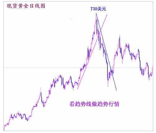 3、趋势线①什么是趋势线所谓趋势线就是上涨行情中两个以上的低点的连线以及下跌行情中两个以上高点的连线,前者被称为上升趋势线,后者被称为下降趋势线。上升趋势线的功能在于能够显示出价格上升的支撑位,一旦价格在波动过程中跌破此线,就意味着行情可能出现反转,由涨转跌;下降趋势线的功能在于能够显示出价格下跌过程中回升的阻力,一旦价格在波动中向上突破此线,就意味着价格可能会止跌回涨。 投资者在画趋势线时应注意以下几点: 1)趋势线根据价格波动时间的长短分为长期趋势线、中期趋势线和短期趋势线,时间周期越长,趋势线的有效性就越高。 2) 趋势线连接的高点或低点的数量越多,有效性就越强 3) 对趋势线的短暂突破不被认为价格将改变运行的轨迹 4)趋势线不应过于陡峭,否则很容易被横向整理突破,失去分析意义。 ②趋势线使用技巧和方法:以从切线理论角度看,趋势线是其中的一部分,它是将波动运行的价格的低点和低点连接或高点和高点连接而形成的直线。如果价格是按一个低点比一个低点高的运行方式来运行,所画出来的趋势线就是上升趋势线;如果价格是按一个高点比一个高点低的运行方式来运行,所画出来的趋势线就是下降趋势线。还有一种是价格的低点和高点横向延伸,没有明显的上升和下降趋势,这就是横盘整理或称为箱形整理。 趋势线可以分成支撑线和压力线,将价格波段运行的低点和低点连接成一条直线,就是支撑线;将价格波段运行的高点和高点连接成一条直线,就是压力线。趋势线的长短与其重要性成正比,长期趋势线和中期趋势线第一点和第二点的距离不应太近,如距离过近,所形成的趋势线的重要性将降低。 趋势线的角度至关重要,过于平缓的角度显示出力度不够,不容易马上产生大行情;过于陡峭的趋势线则不能持久,往往容易很快转变趋势。 著名角度线大师江恩认为:45度角的趋势线非常可*,也就是江恩所说的1×1角度线。 确立趋势线对于操作具有非常重要的意义。“顺势而为”就是其中的精华。 支撑线和压力线是可以相互转化的,当价格从上向下突破一条支撑线后,原有的支撑线将可能转变为压力线;而当价格从下向上突破一条压力线后,原有的压力线也将可能转变为支撑线。在某些时候,我们可以发现,价格运行在两条相互平行的趋势线之间,上面的线为压力线,下面的线为支撑线。两条趋势线就构成了通道或形态。